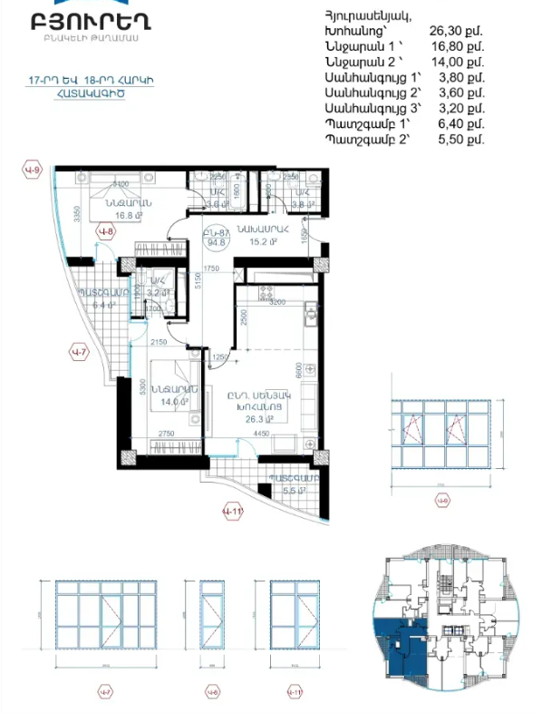 Վաճառվում է 3 սենյականոց զրոյական վիճակով ընդարձակ բնակարան Բյուրեղում՝ Արշակունյաց պողոտայում: